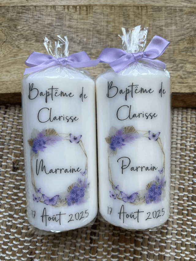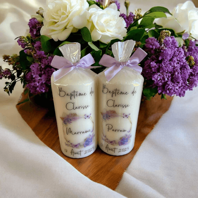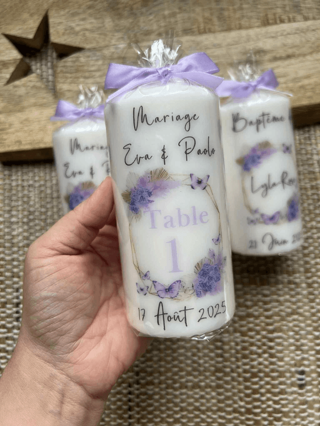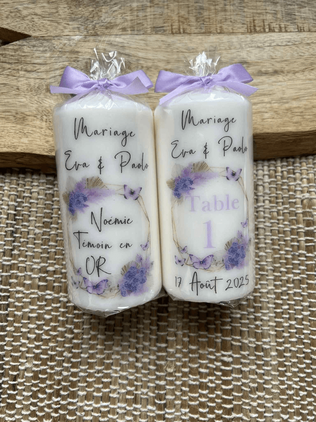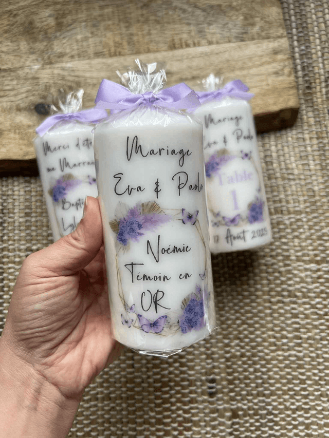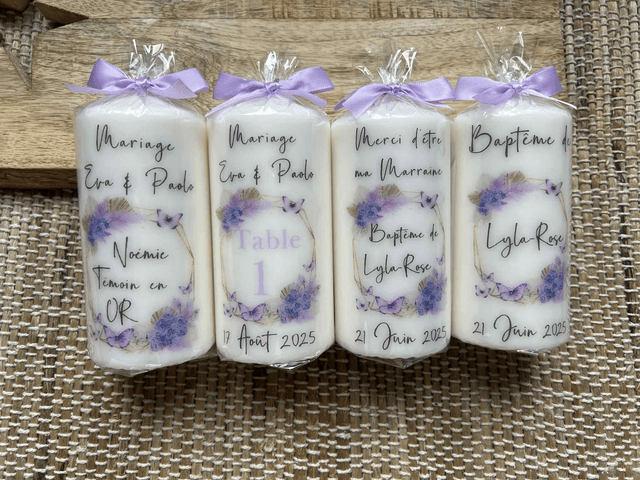 Emballage de chaque bougie individuellement + nœud blanc ou violet