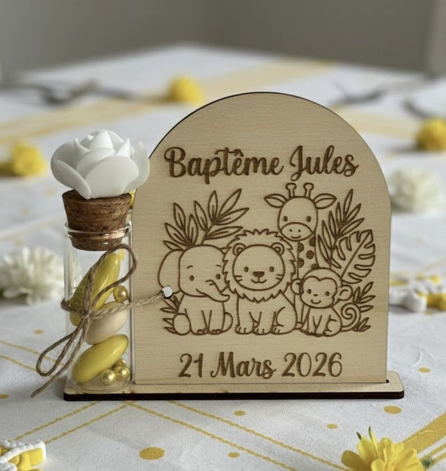 Support & Fiole à dragées thème Jungle