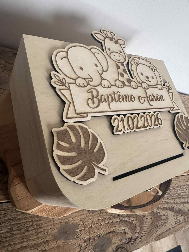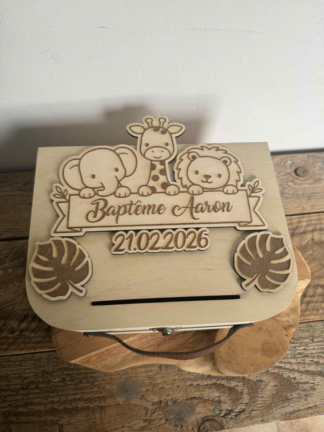 Cette urne en forme de valisette en bois gravé personnalisée est l’accessoire idéal pour célébrer les moments importants de la vie : naissance, baptême, anniversaire, ou tout autre événement marquant.